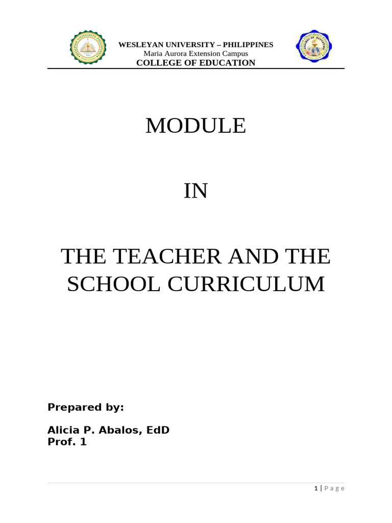 Profed 05 - Chapter 1 The School Curriculum and the Teacher - MODULE ...