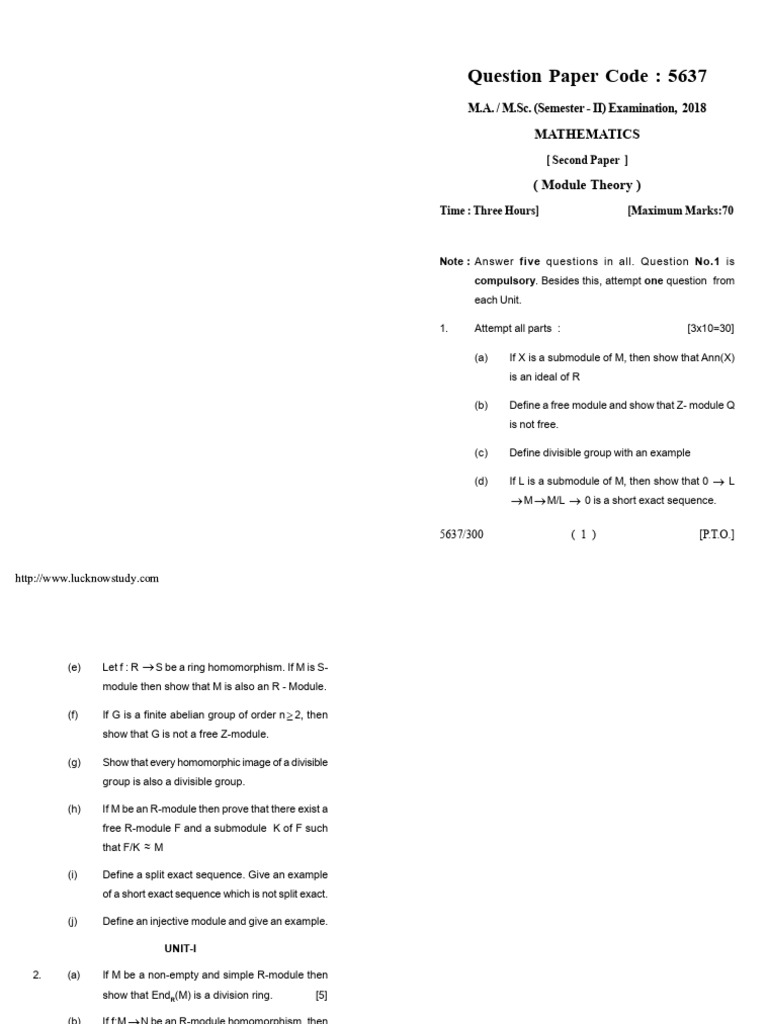 M.A. Mathematics Exam Paper 5637: Module Theory | PDF | Module ...