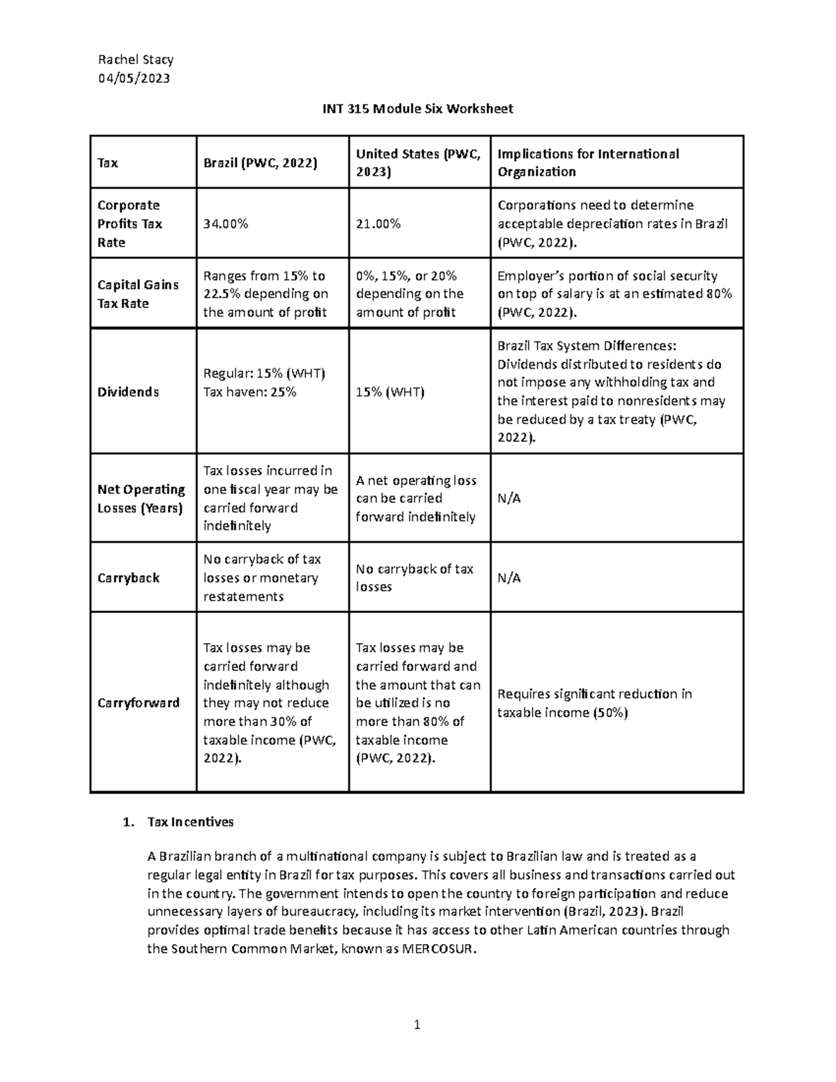 INT315 6-2 Tax Worksheet - Rachel Stacy 04/05/ INT 315 Module Six ...