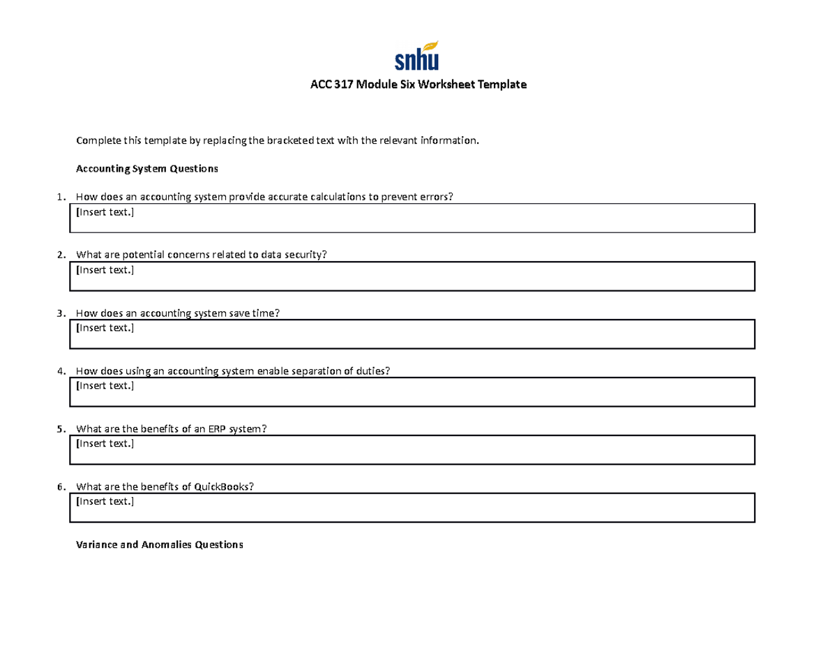 ACC 317 Module 6 Worksheet: Accounting Systems & Anomaly Analysis - Studocu