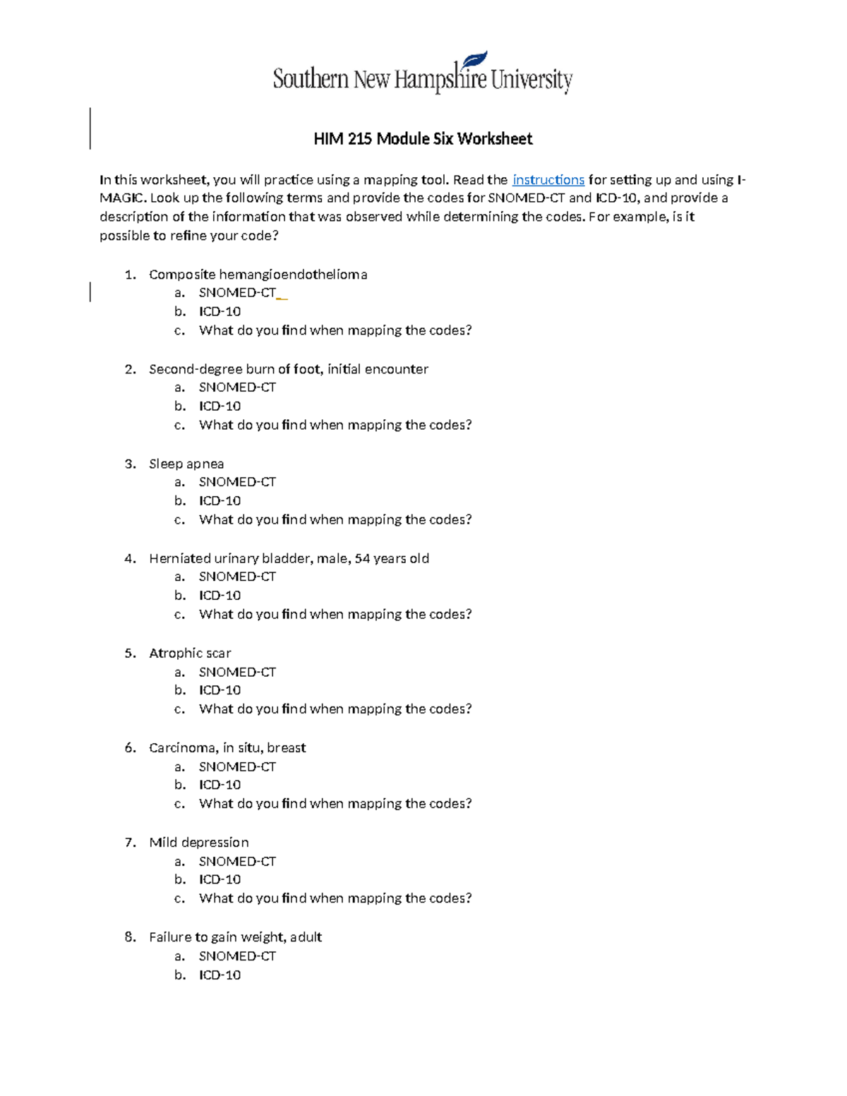 HIM 215 Module Six Worksheet Completed - HIM 215 Module Six Worksheet ...