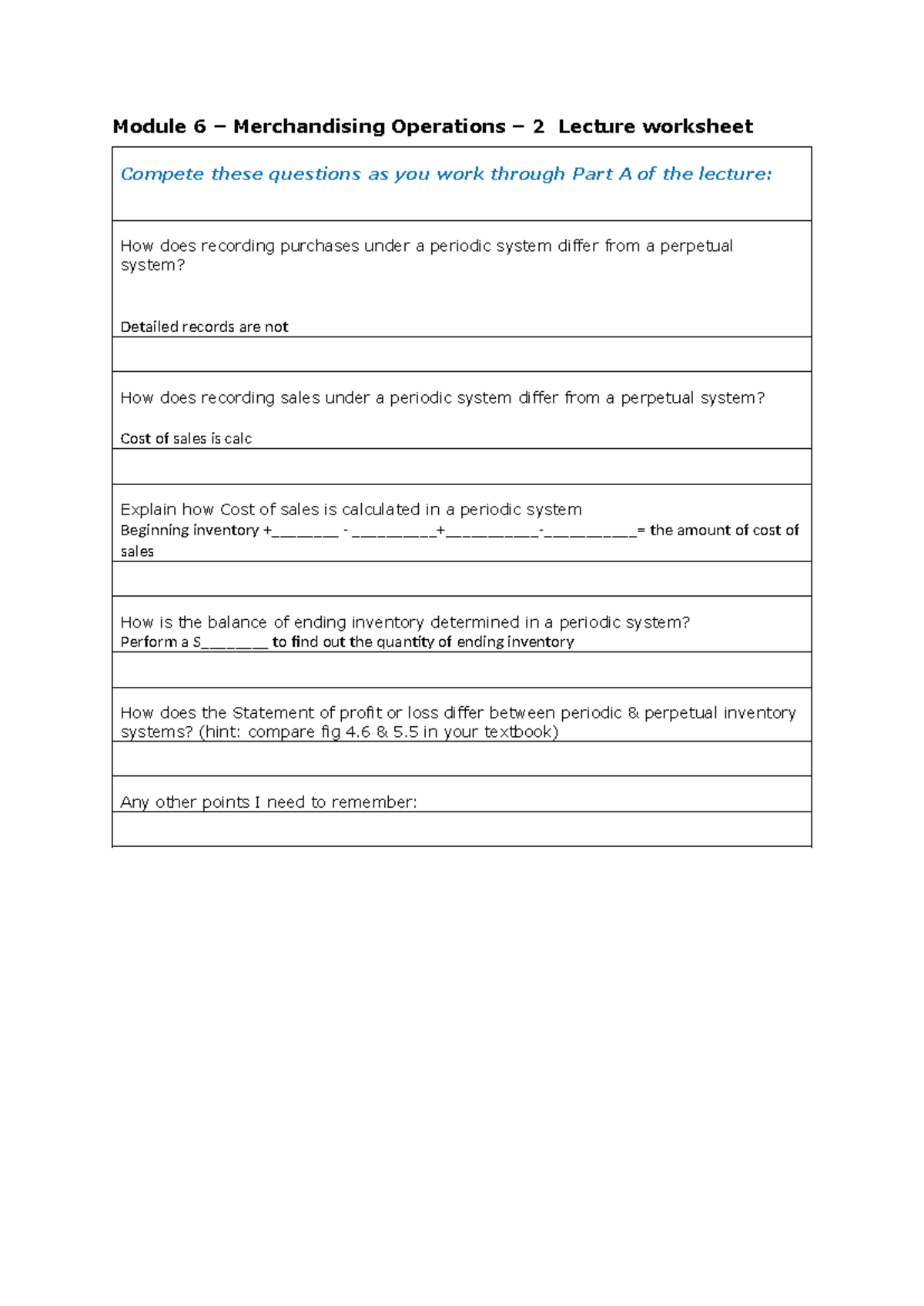 Module 6 Lecture worksheet s2 2024 - Module 6 – Merchandising ...