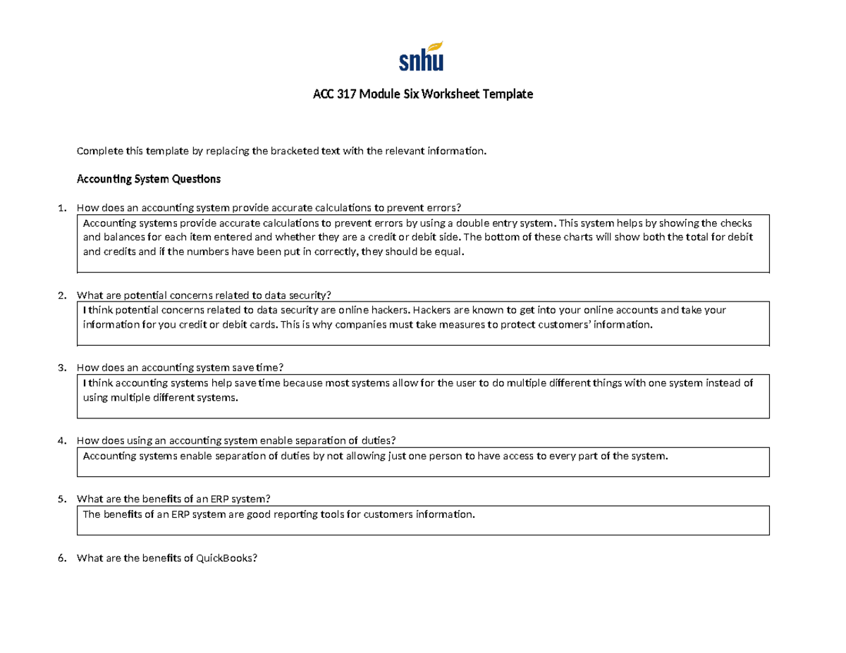 ACC 317 Module Six Worksheet - Accounting System Questions How does an ...