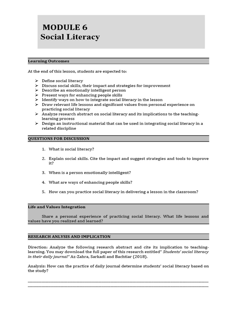 Worksheet-Module 6 | Download Free PDF | Literacy | Curriculum