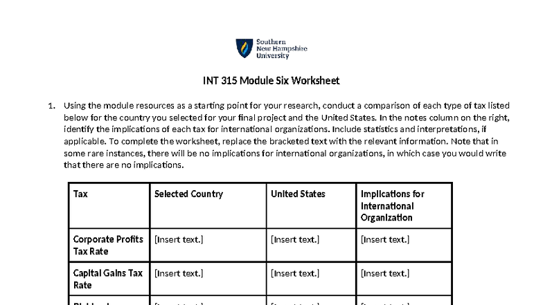INT 315 Module 6 Tax Comparison Worksheet for Final Project - Studocu