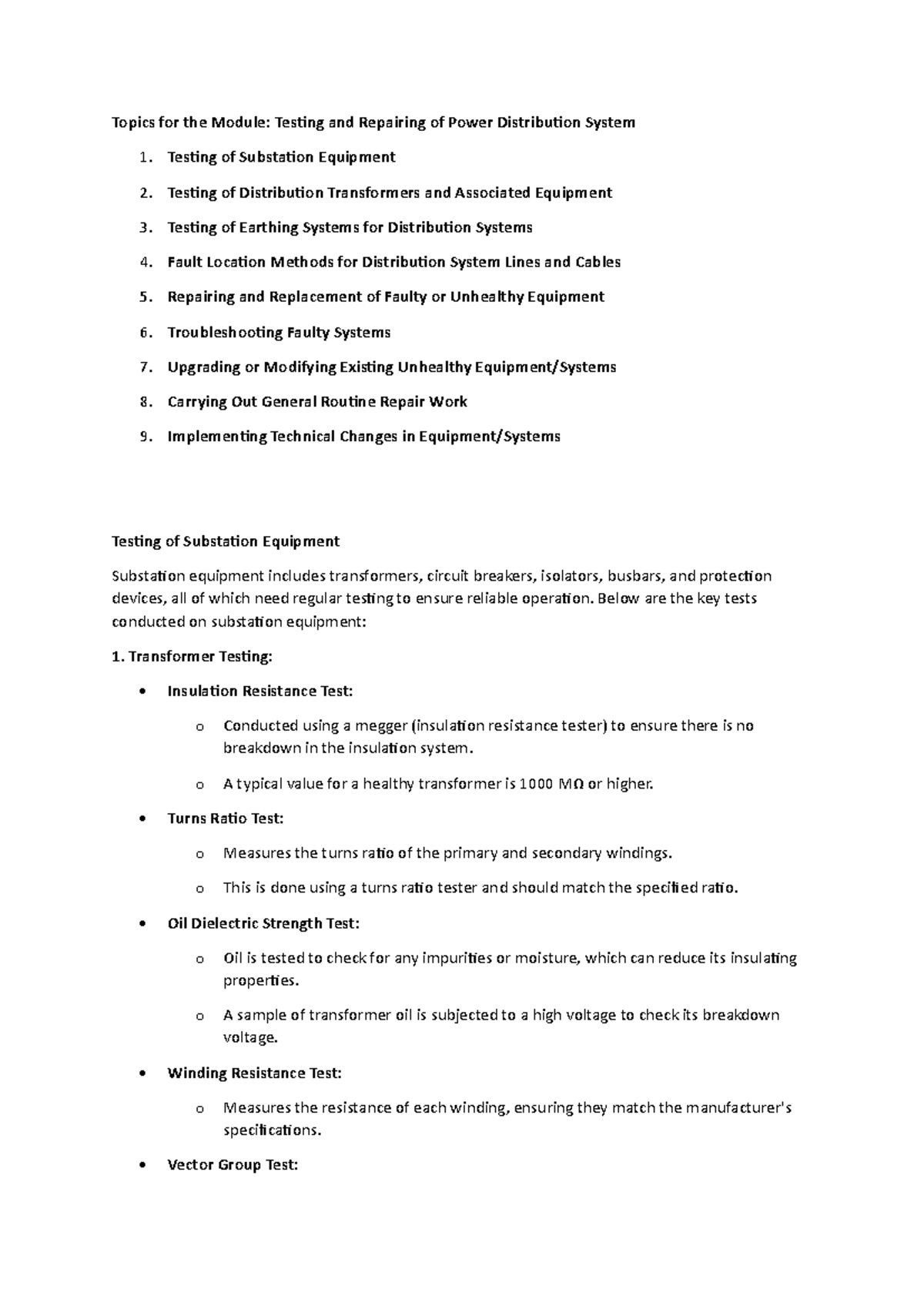 Module IV : Testing and repairing of Power distribution system ...