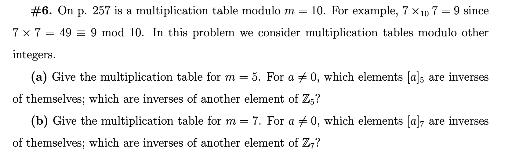 Solved #6. On p. 257 is a multiplication table modulo m = | Chegg.com
