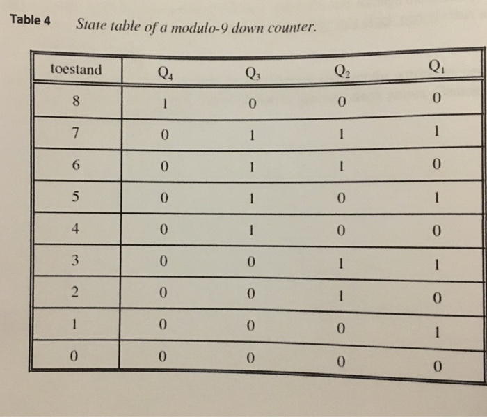 Solved Table 4 State table of a modulo-9 down counter. | Chegg.com