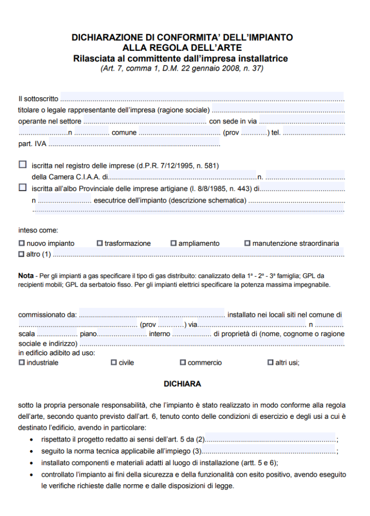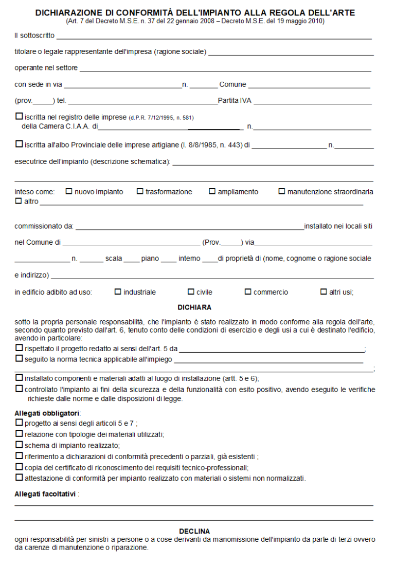 Dichiarazione di Conformità Impianto Elettrico Word e PDF - Modulo e ...