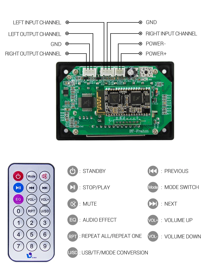 Bluetooth MP3 USB FM radio player and decoder module with Remote ...