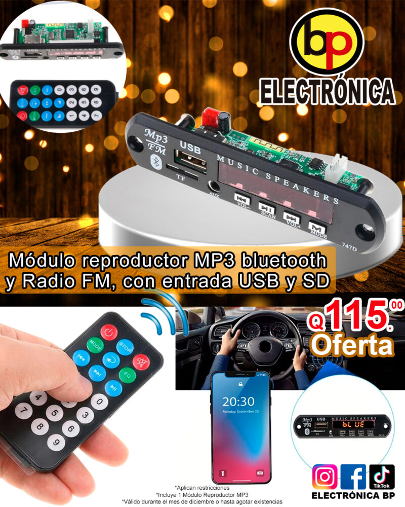 Módulo MP3 con entrada para USB, Bluetooth y tarjeta micro SD - Guatemala