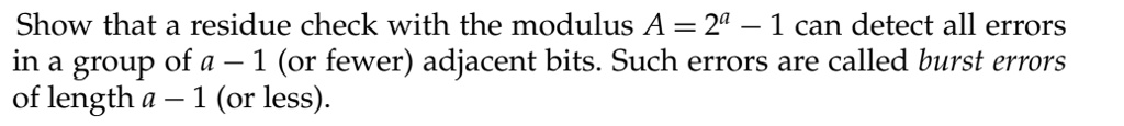 Show that a residue check with the modulus A = 2a 1 can detect all ...