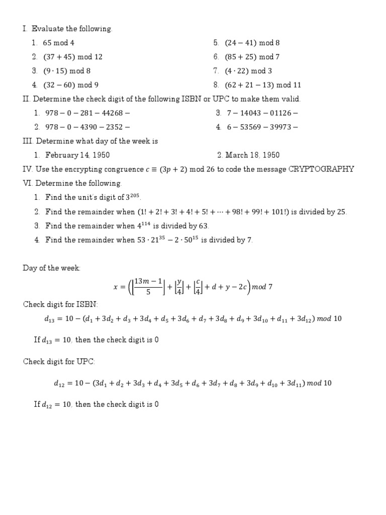 Modular Arithmetic and Check Digits Guide | PDF | Teaching Methods ...
