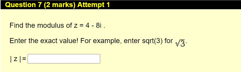 Solved Question 7 (2 marks) Attempt 1 Find the modulus of z | Chegg.com