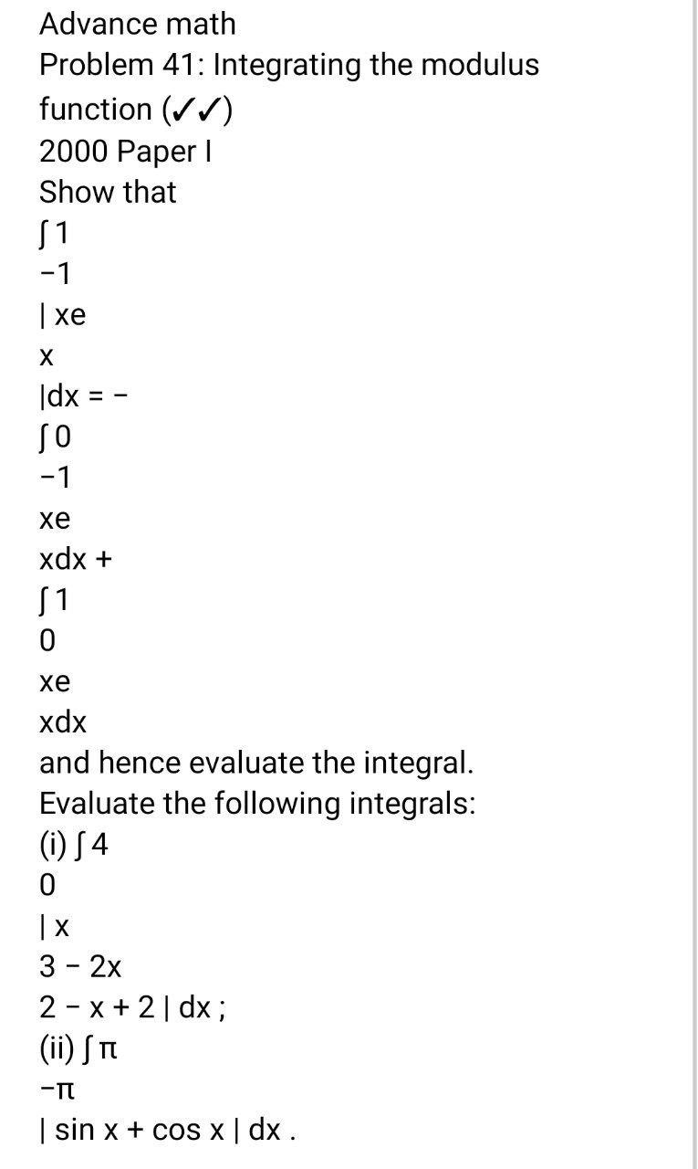 Solved Advance math Problem 41: Integrating the modulus | Chegg.com