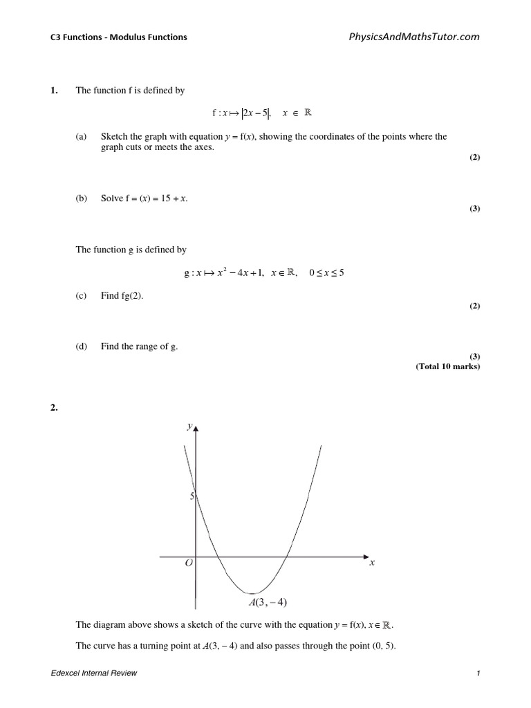 C3 Functions - Modulus Functions | PDF | Cartesian Coordinate System ...