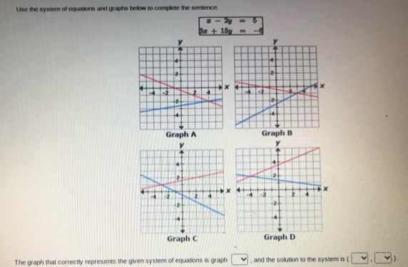 Use the system of equations and graphs below to complete the sentence ...