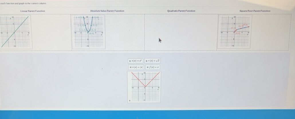 Solved: each function and graph to the correct column. Linear Parent ...