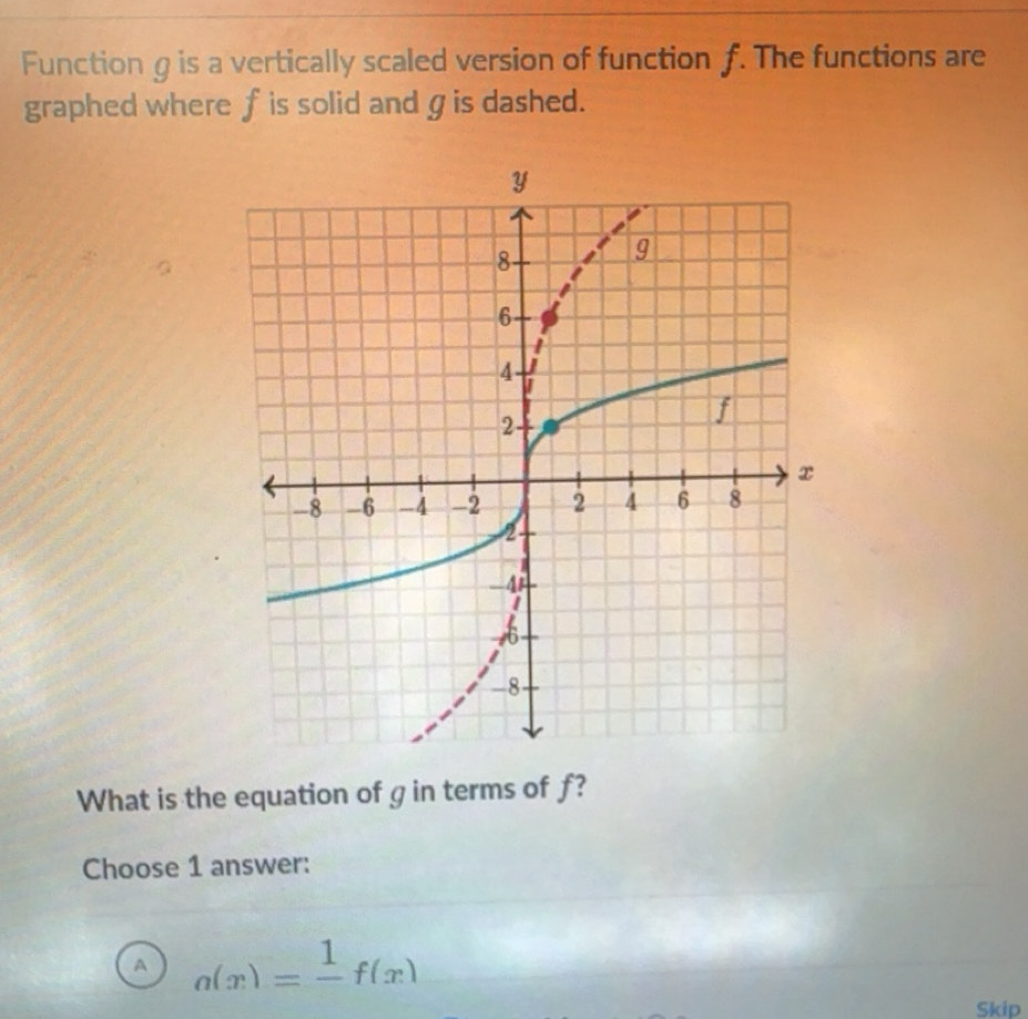 Solved: Function g is a vertically scaled version of function f. The ...