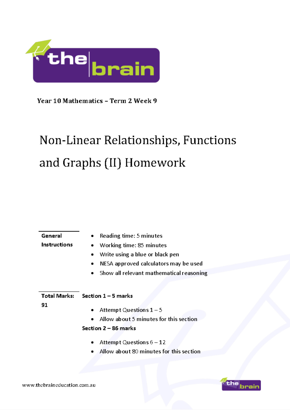 Y10 T2 W9 Non-Linear Relationships, Functions & Graphs Homework - Studocu