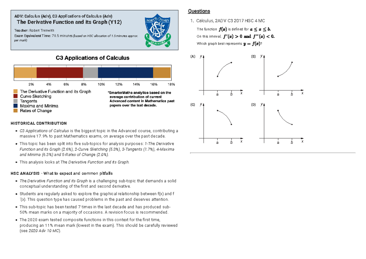 ADV: Calculus (Adv), C3 The Derivative Function & Graph Analysis (Y12 ...