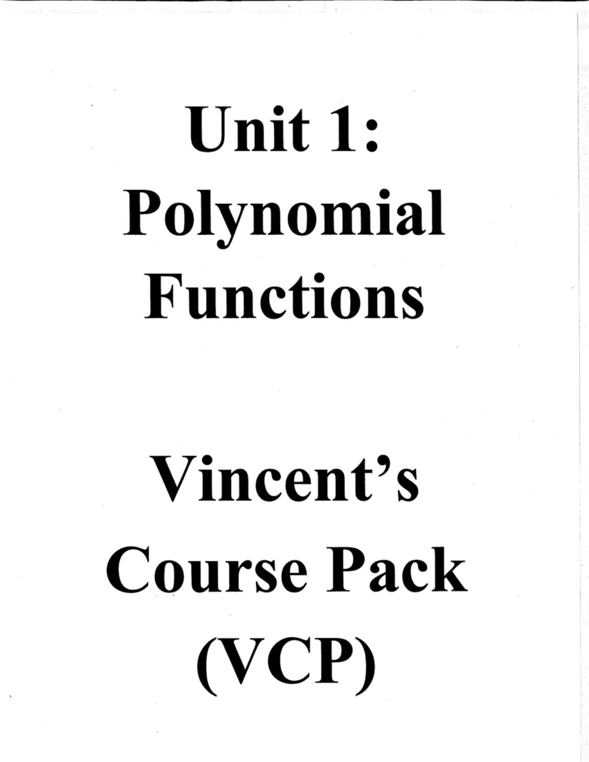 Unit 1: Polynomial Functions Course Pack (VCP) - Symmetry & Graphing ...