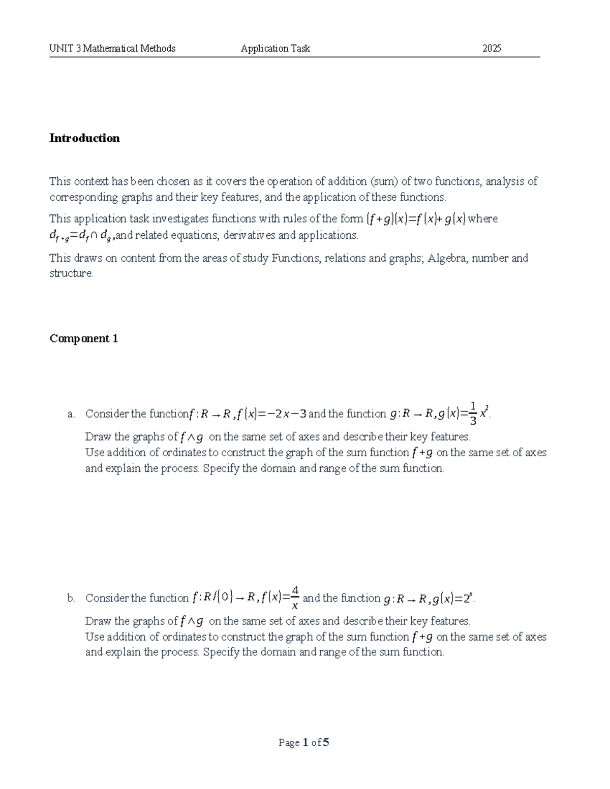 UNIT 3 Mathematical Methods Application Task 2026: Functions & Graphs ...