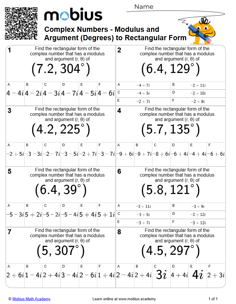 Free Worksheet: Complex Numbers - Modulus And Argument (Radians) To ...