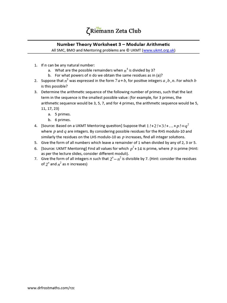 Modular Arithmetic Number Theory Worksheet | PDF | Prime Number ...