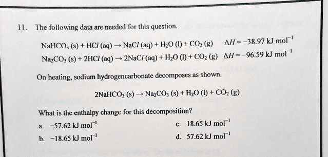 The following data are needed for this question: NaCl (aq) + H2O (l ...