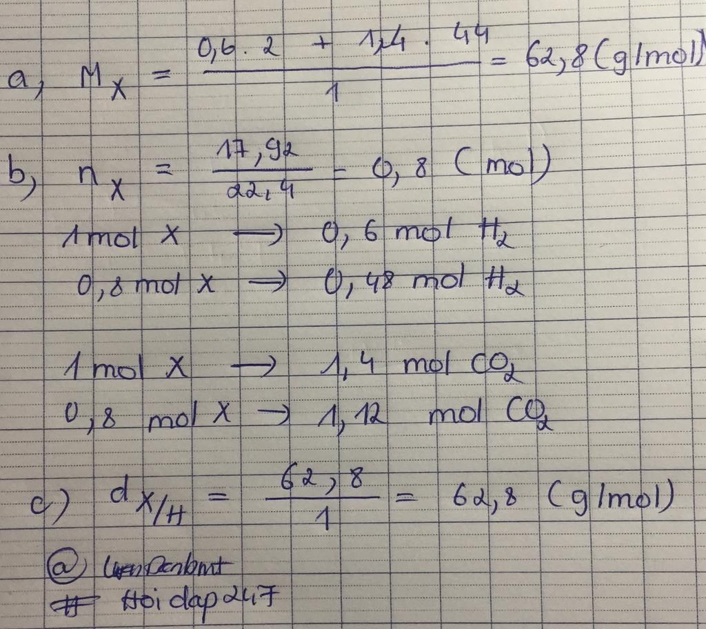 TRong 1 mol hỗn hợp X có 0,6 moi H2 và 1,4 mol CO2 a) tính KL mol X b ...