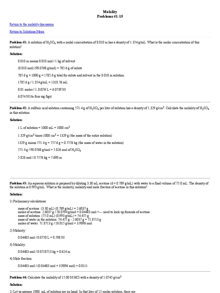 Molality, Molarity, Dilution etc_ Sample Problems | Exercises ...