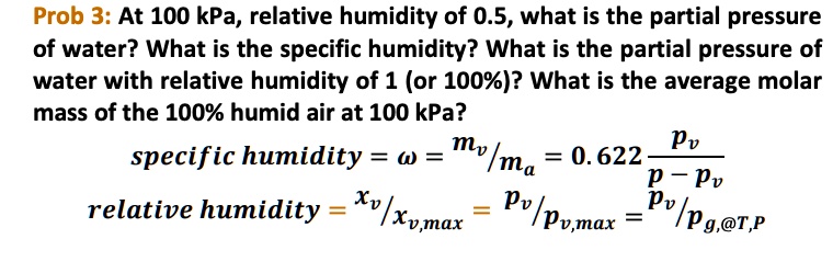 SOLVED: Prob 3: At 100 kPa, relative humidity of 0.5, what is the ...