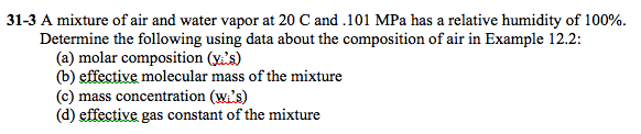 A mixture of air and water vapor at 20 C and .101 Mpa | Chegg.com