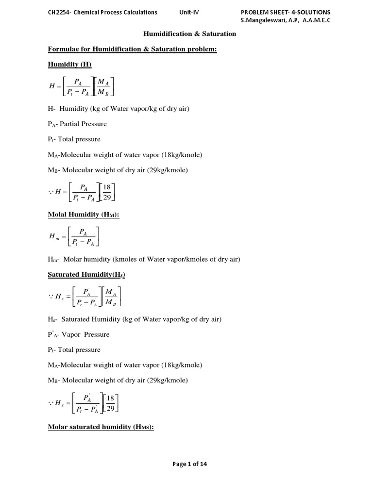 CH2254 Unit 4 Solution PS4 | PDF | Relative Humidity | Water Vapor