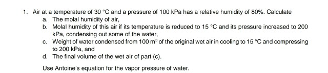 Solved Given air at 41 % relative humidity at 30C, calculate | Chegg.com