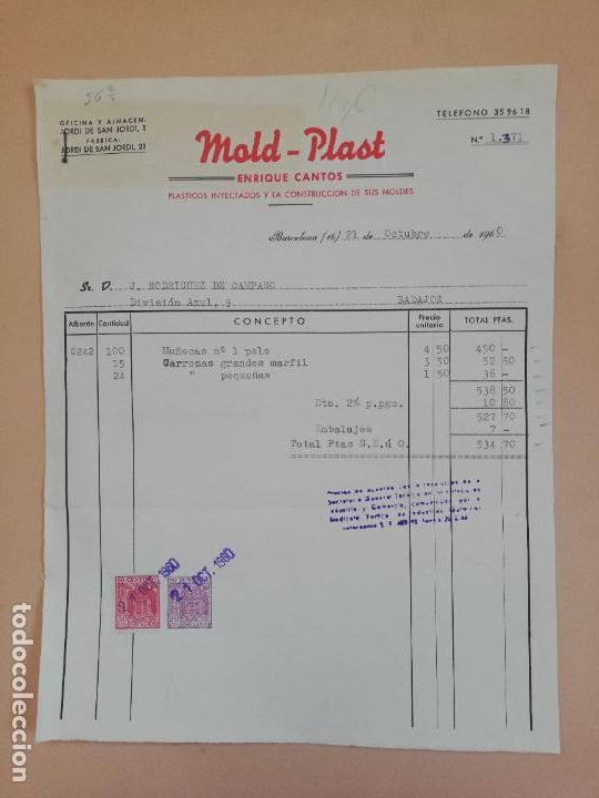 factura. mold-plast. enrique cantos. plasticos - Buy Antique invoices ...