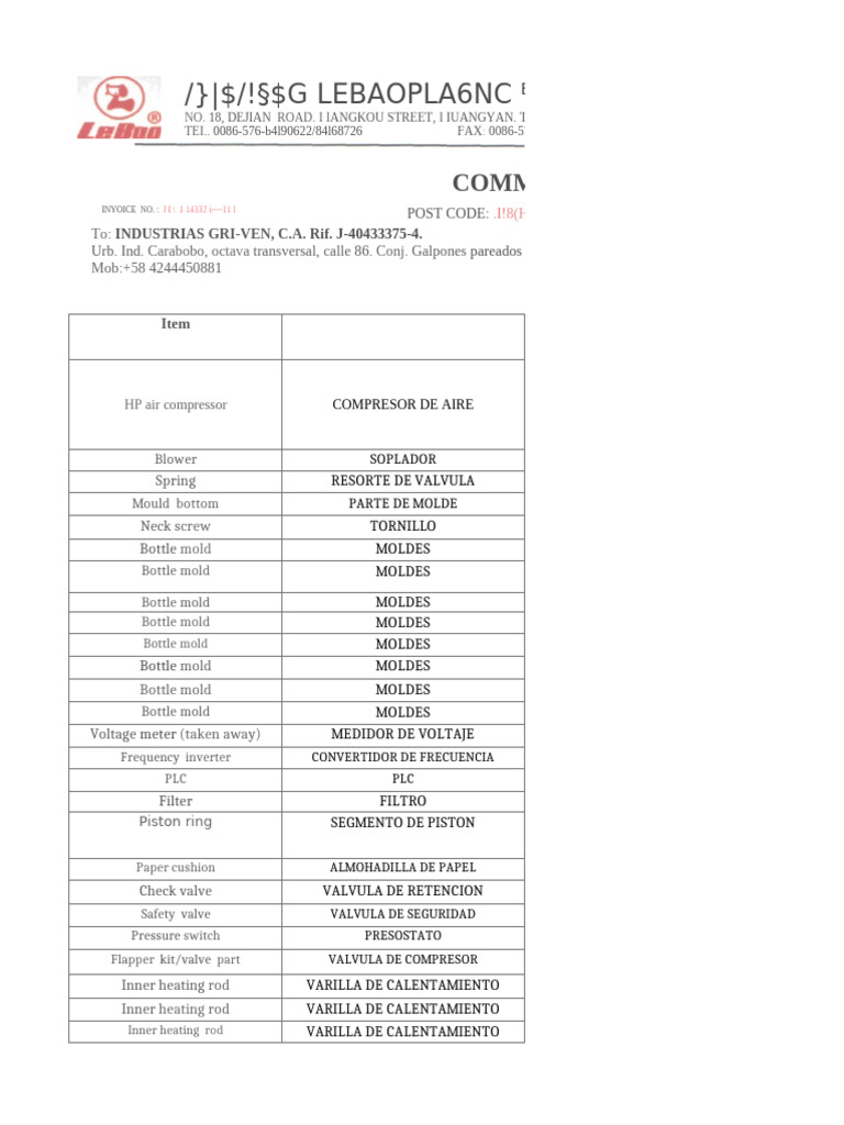 Commercial Invoice for Industrial Equipment and Molds | PDF ...