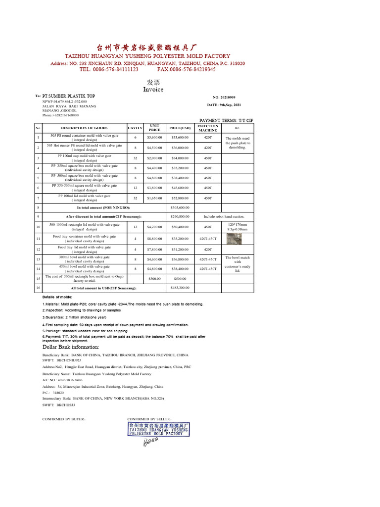 Invoice-Thin Wall Box Mold With Bank Information-20210913 | PDF