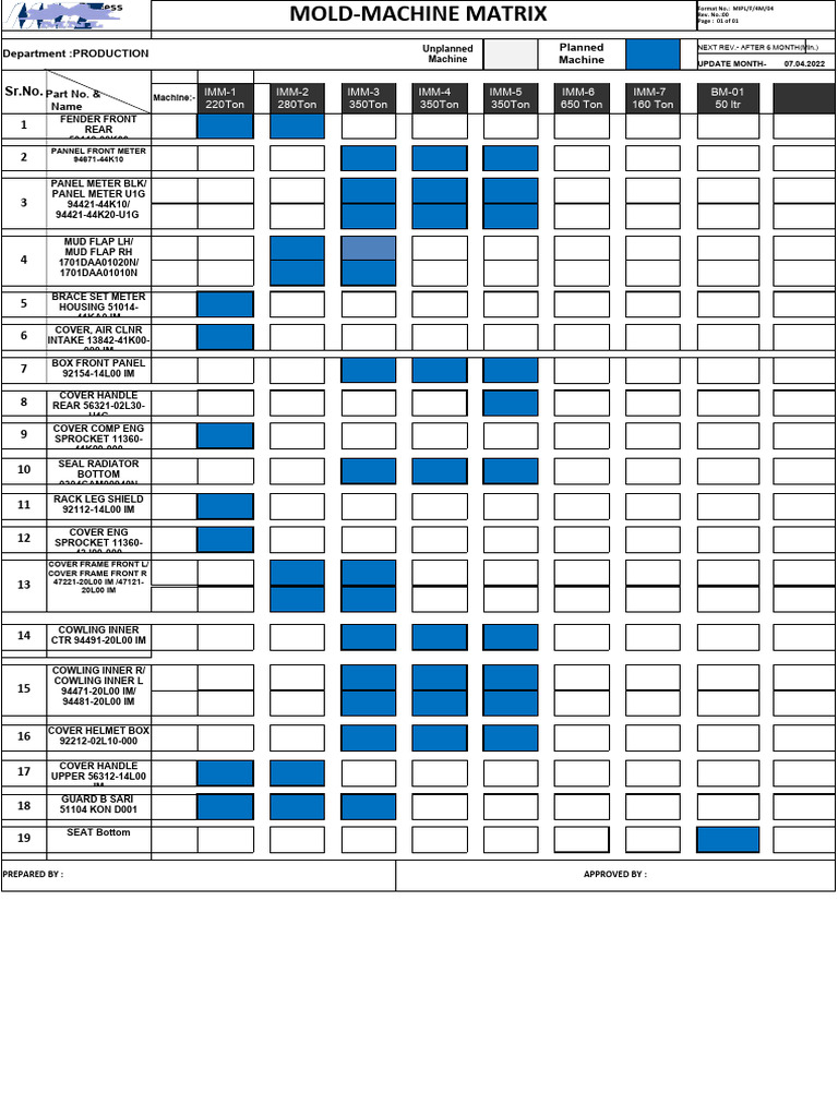 4 Mold Machine Matrix | PDF | Motor Vehicle | Land Vehicles