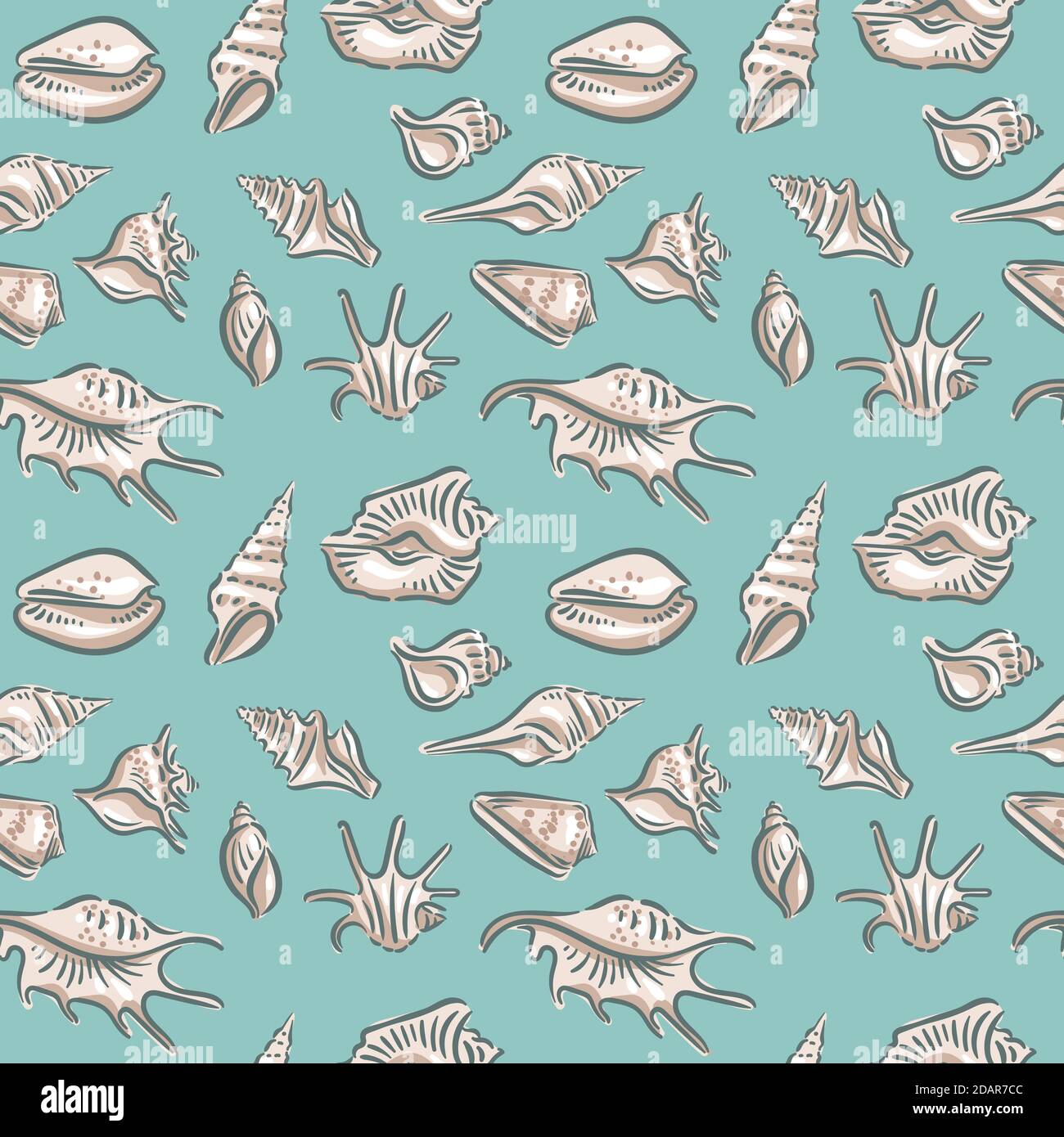 Sea shells pattern. Mollusks background. Tropical underwater shells ...