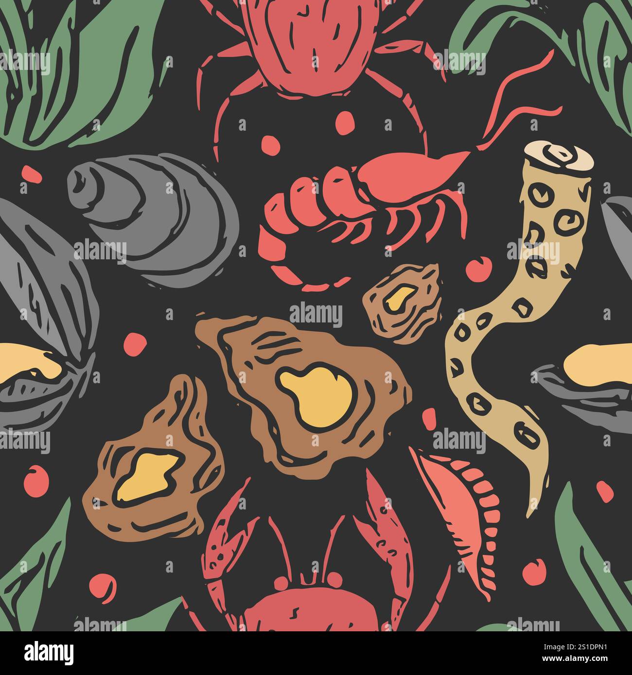 Ocean Crustaceans Mollusks And Ocean Or Sea Animals Seamless Pattern