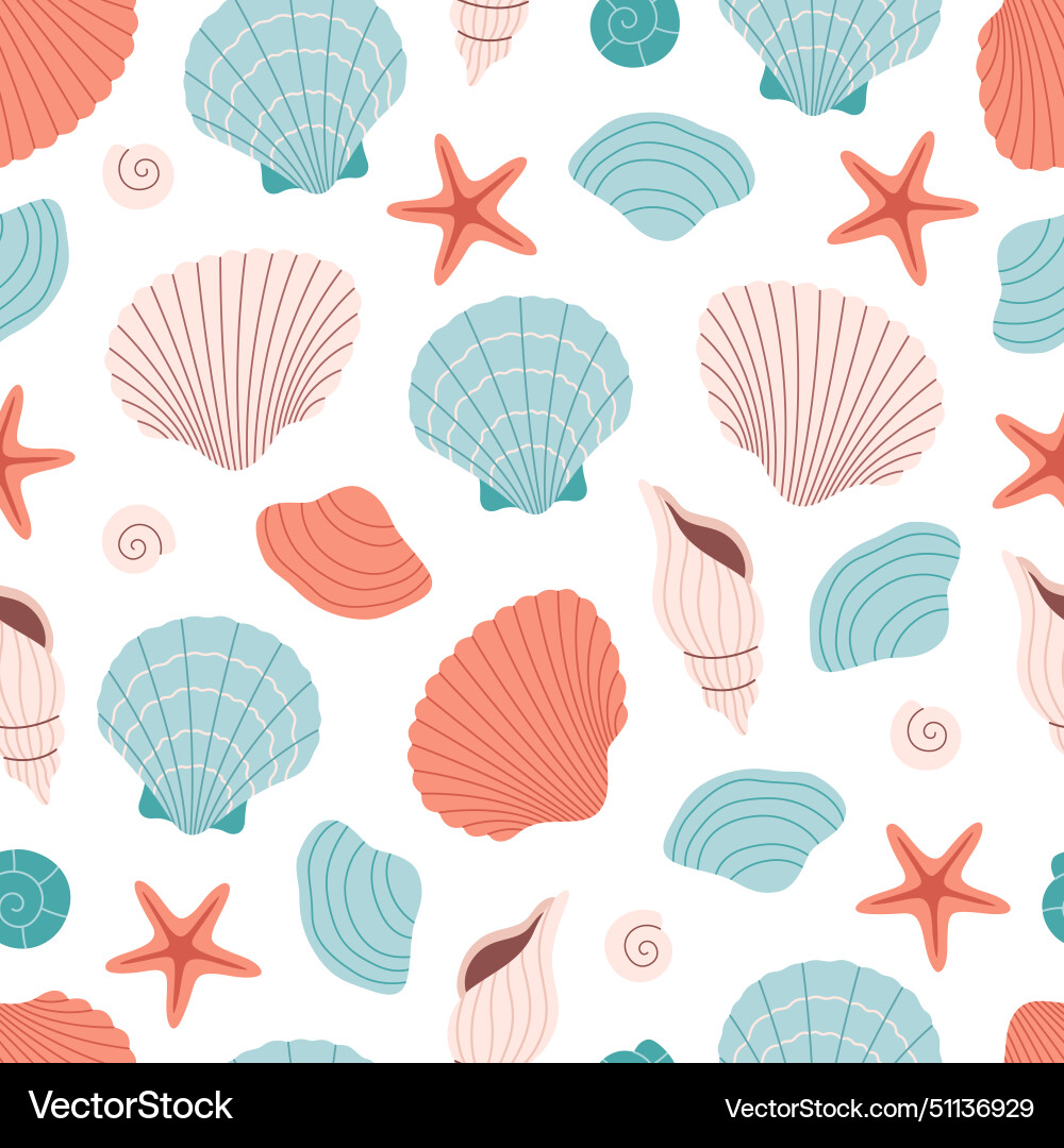 Sea Shell Mollusk Seamless Pattern Background Stock Vector (Royalty ...