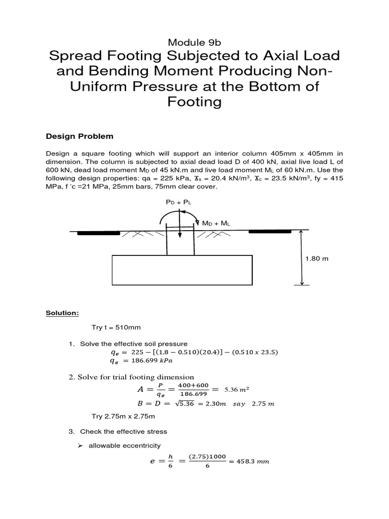 Module 9b - Spread FTG With Axial Load & Bending Moment (Sample Problem ...