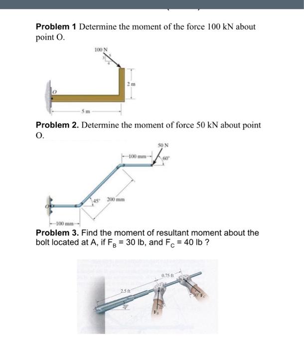 Solved Problem 1 Determine the moment of the force 100kN | Chegg.com