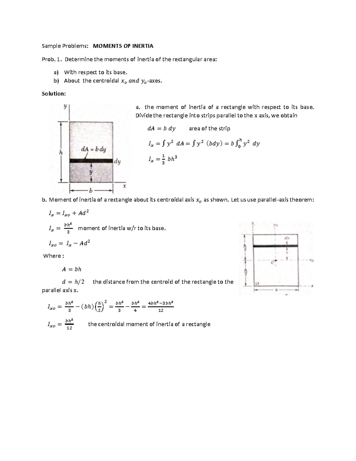 ENS161 Sample Problems: Moments of Inertia Calculations - Studocu