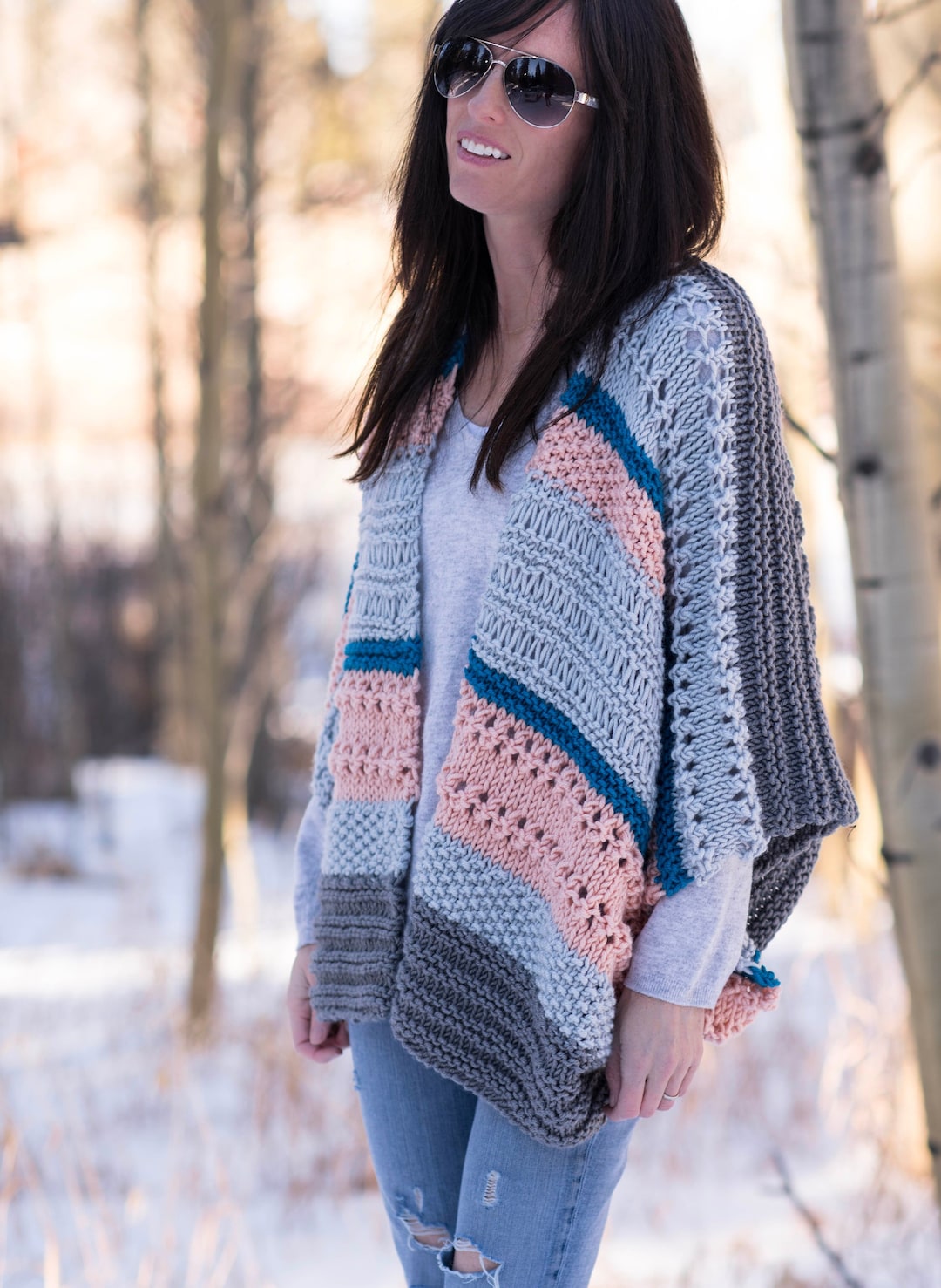 Monaco Knit Kimono Pattern, Stitch Sampler Knit Cardigan, Knit Sweater ...