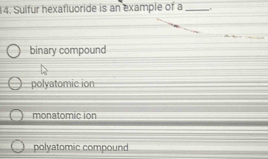 Solved: Sulfur hexafluoride is an example of a_ binary compound ...