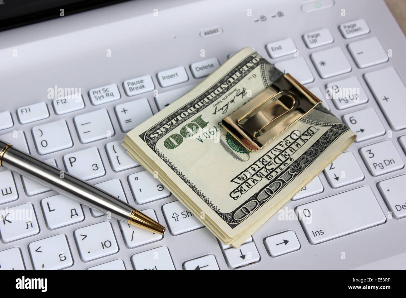 Money for the computer Stock Photo - Alamy