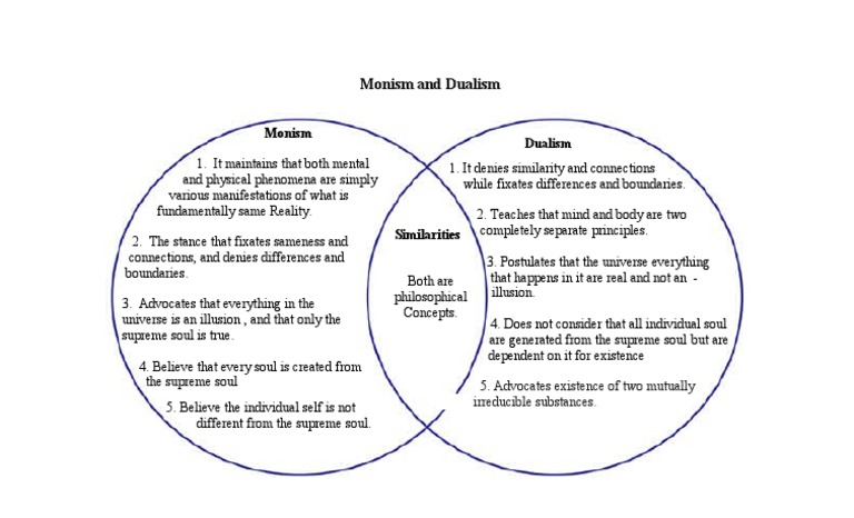 Create a Venn diagram, and compare and contrast the concepts of monism ...